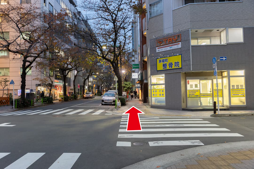 ドラッグストア「Tomod's茅場町店」の角を右に曲がってください。